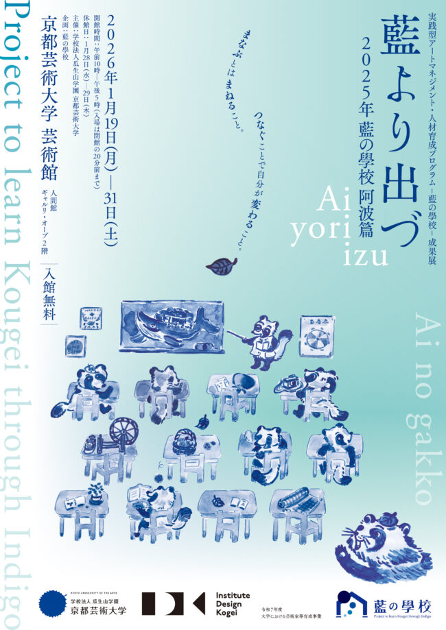 京都芸術大学では、令和7年度大学における芸術家等育成事業「受け継ぐ、伝える、伝統文化を未来へ生かす実践型アートマネジメント・人材育成プログラム-藍の學校-」に取り組みました。