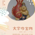詩人の宗左近氏寄贈の縄文時代の土器、装身具、土偶などのコレクション約200点、考古学者・江上波夫氏寄贈のシルクロード沿道の工芸品約170点、 京都芸術短期大学の元学長である大江直吉氏の浮世絵師・豊原国周の作品約360点、伏見人形をはじめとする全国の土人形550点余りです。
